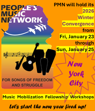 Peoples' Voice Cafe will be closed this Saturday but we urge all of you to attend the 2026 Winter Convergence of our sister organization, the Peoples' Music Network! The live gathering will be in New York City at the Central Park East II School.